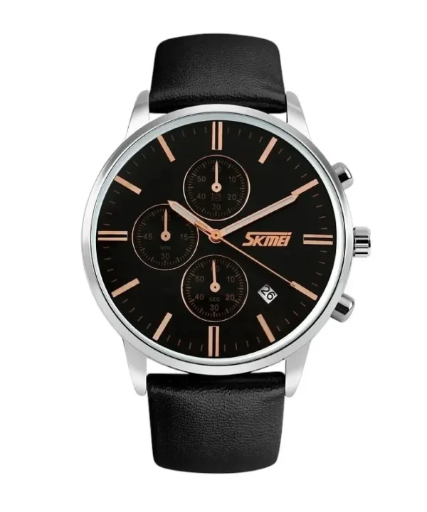 SKMEI – 9103 – Premium Chronograph Leather Edition Watch – black/black