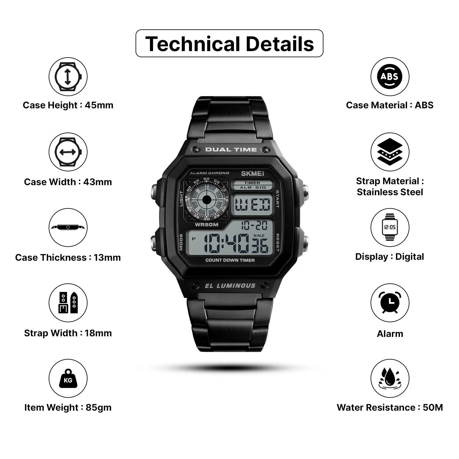 Skmei – 1335 – Digital Sports Countdown Waterproof Watch – Black
