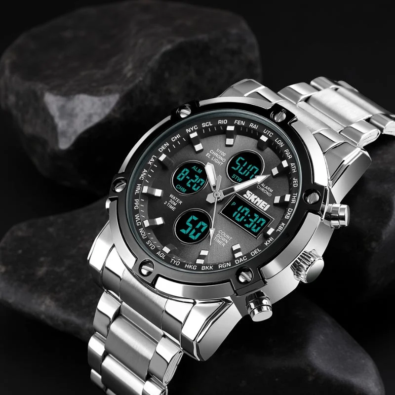 Skmei – 1389 – Dual Display Waterproof Business Watch – Silver/Black