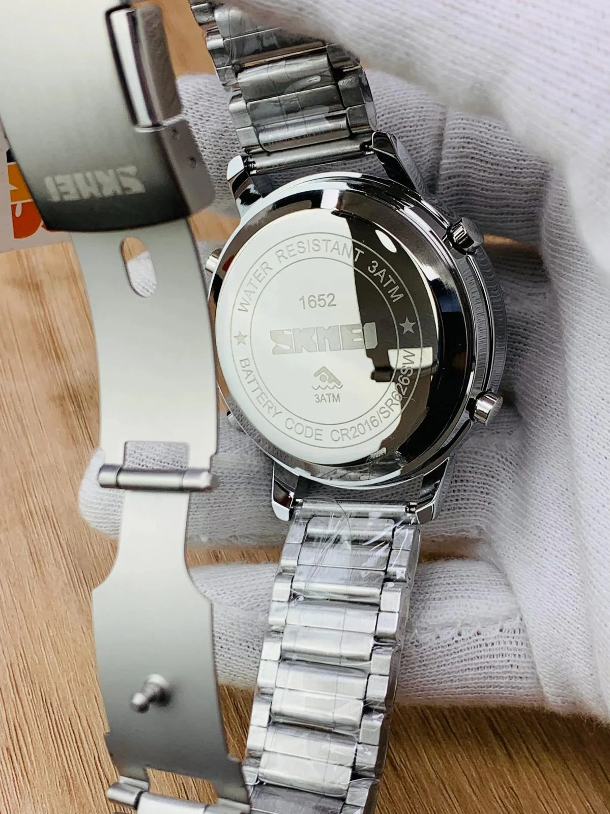 Skmei – 1652 (Chain) – Multifunctional Waterproof – Silver/White-Steel