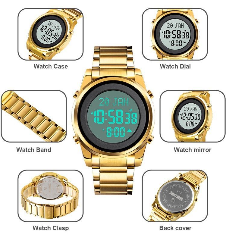 Be the first to review “SKMEI – 1734 – Qibla Azan Time Reminder Prayer Watch – gold” Cancel reply