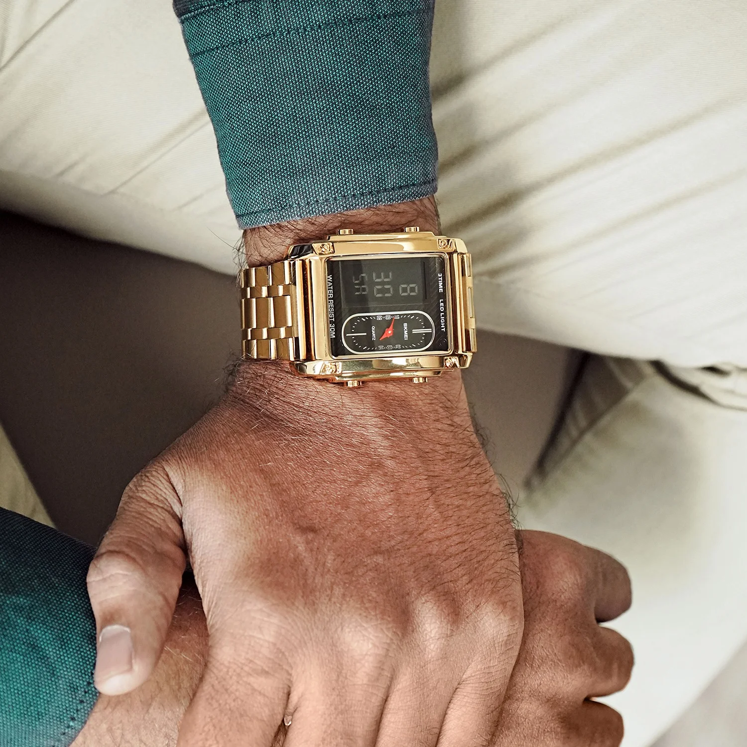 3Time, Chrono, Alarm, Date, Week, LED Light, 12/24 Hour Clock📏 Case Size: 49 × 38mm | Thickness: 15mm