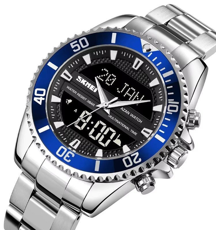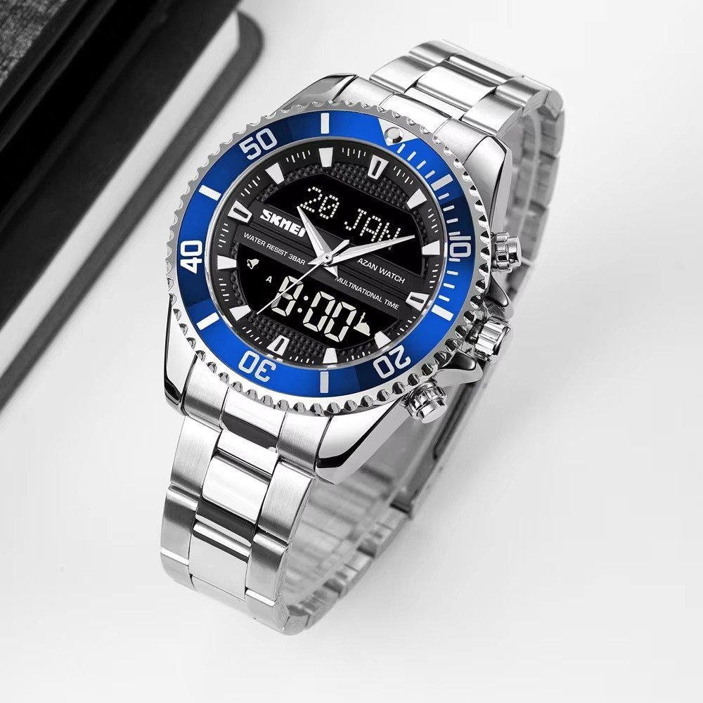 SKMEI – 1896 – Qibla Azan Time Reminder Prayer Watch – silver/blue