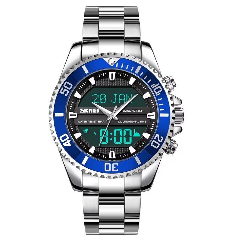 Be the first to review “SKMEI – 1896 – Qibla Azan Time Reminder Prayer Watch – silver/blue” Cancel reply