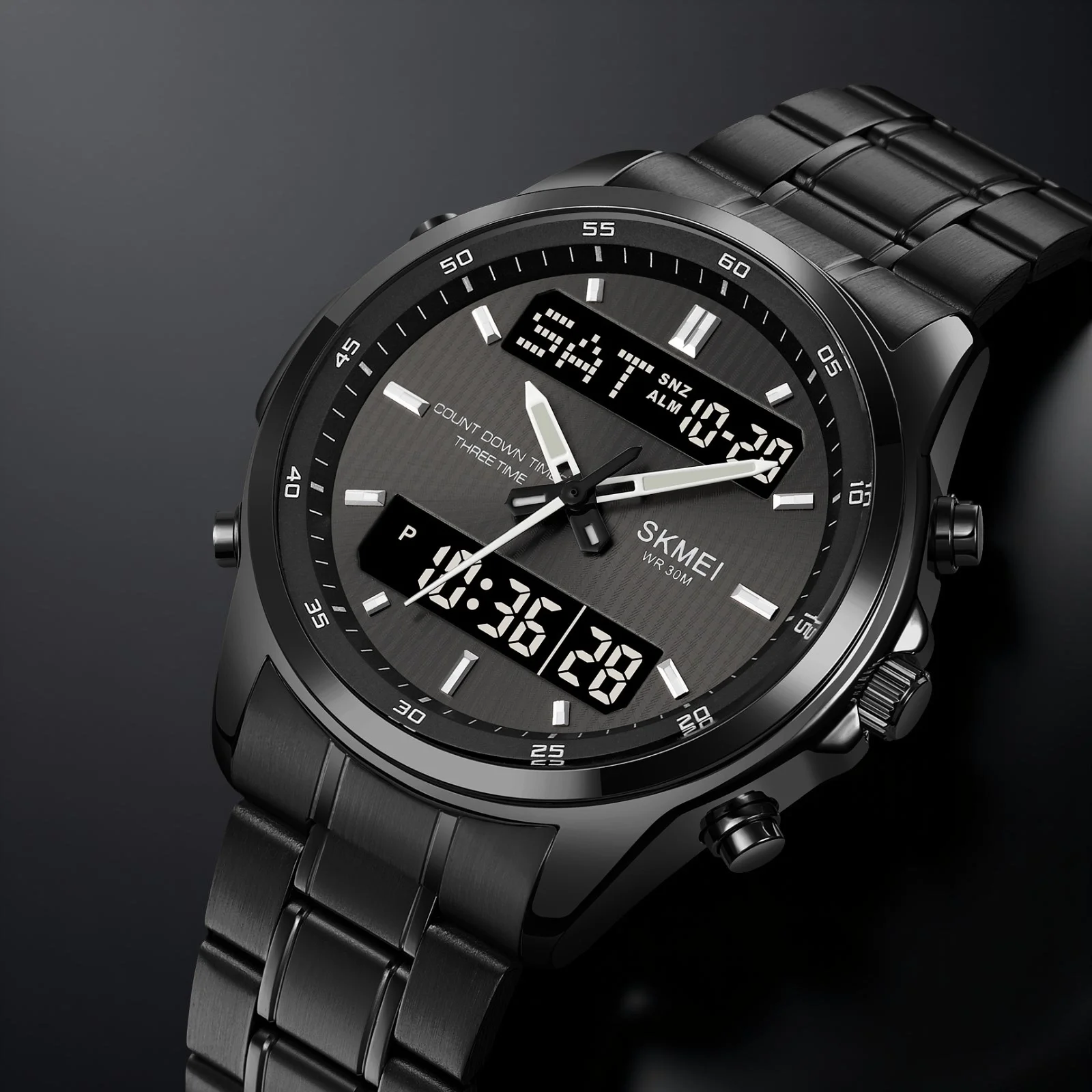 Skmei – 2049 – Multifunctional Waterproof Watch – Black/Black