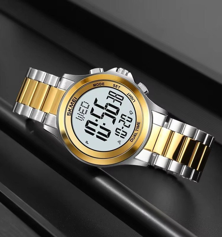 Skmei – 2271 – Digital Dual Time Men’s Stainless Steel Watch – silver gold