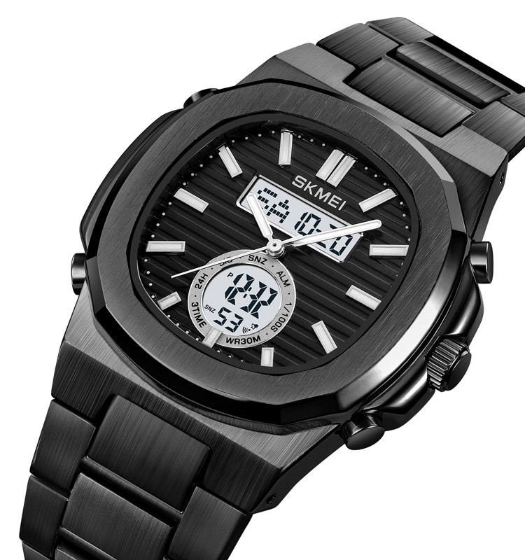 Skmei – 2279 – Dual Time Stainless Steel Watch – black-white