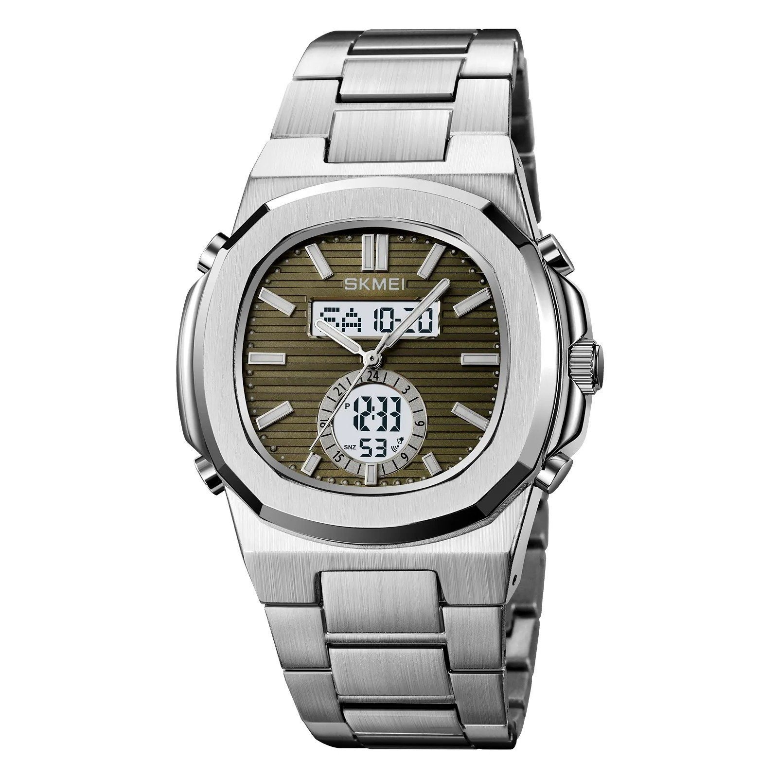 Skmei – 2279 – Dual Time Stainless Steel Watch – silver/green