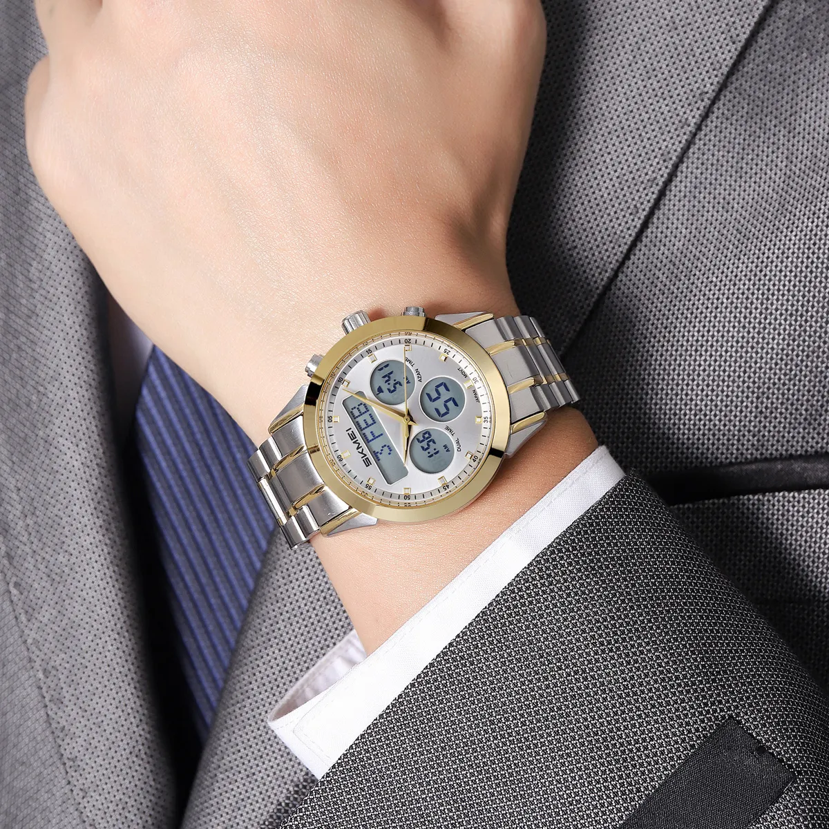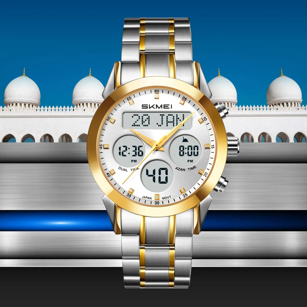 SKMEI – 2381 – Qibla Azan Time Reminder Prayer Watch – gold/silver