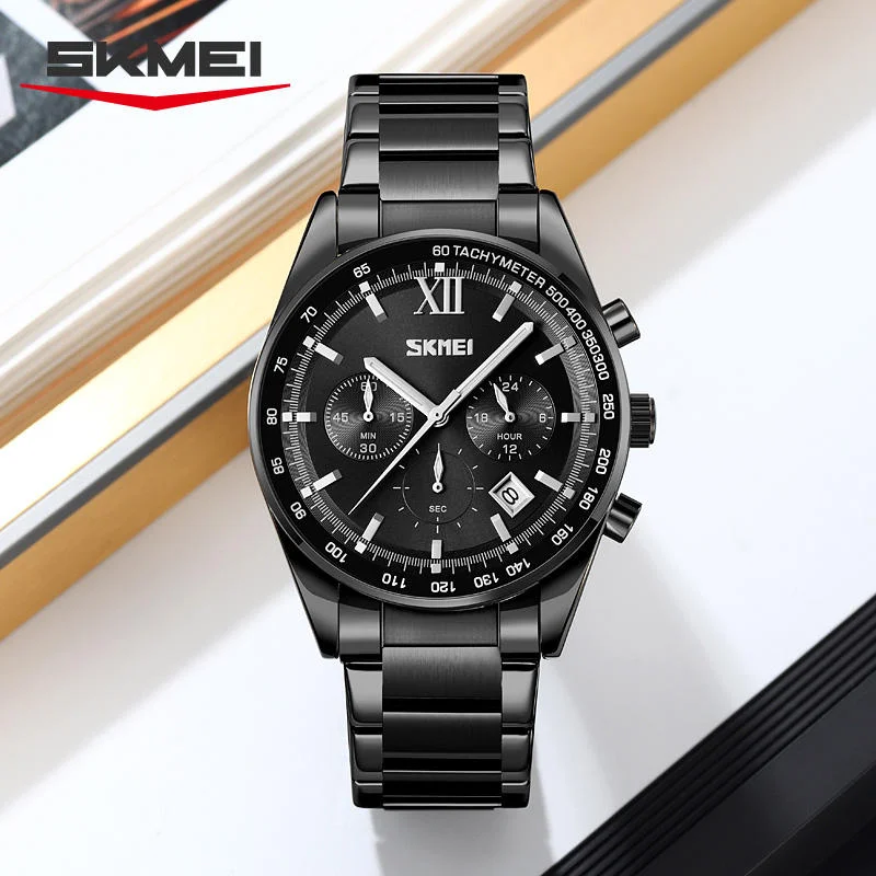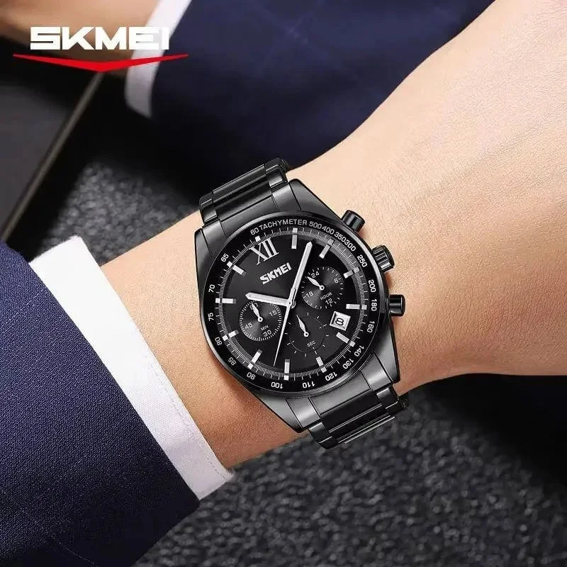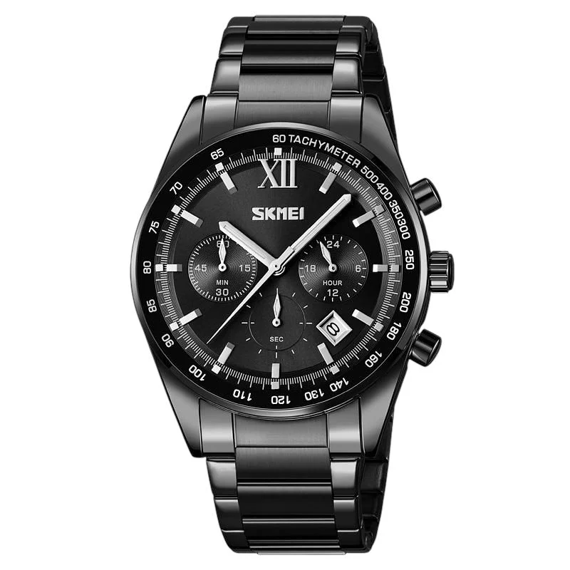SKMEI – 9096 – Analog Chronograph Stainless Steel Watch – black/black