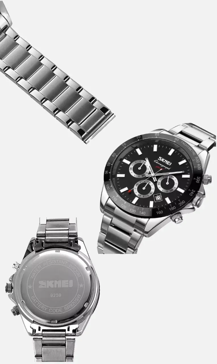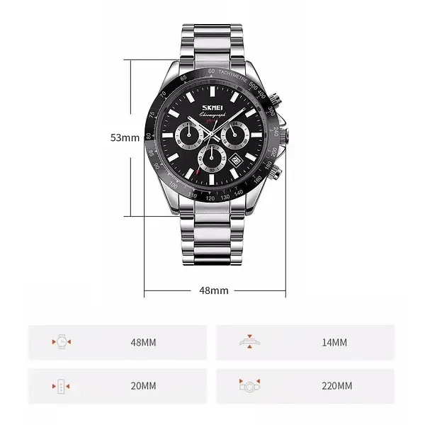 Skmei – 9259 – Stainless Steel Chronograph – Silver/Black
