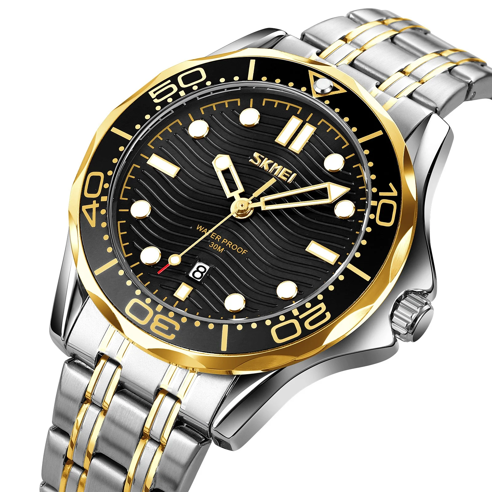 Skmei – 9276 – Quartz Casual Luxury Business Analog Watch – silver/gold-black-Steel