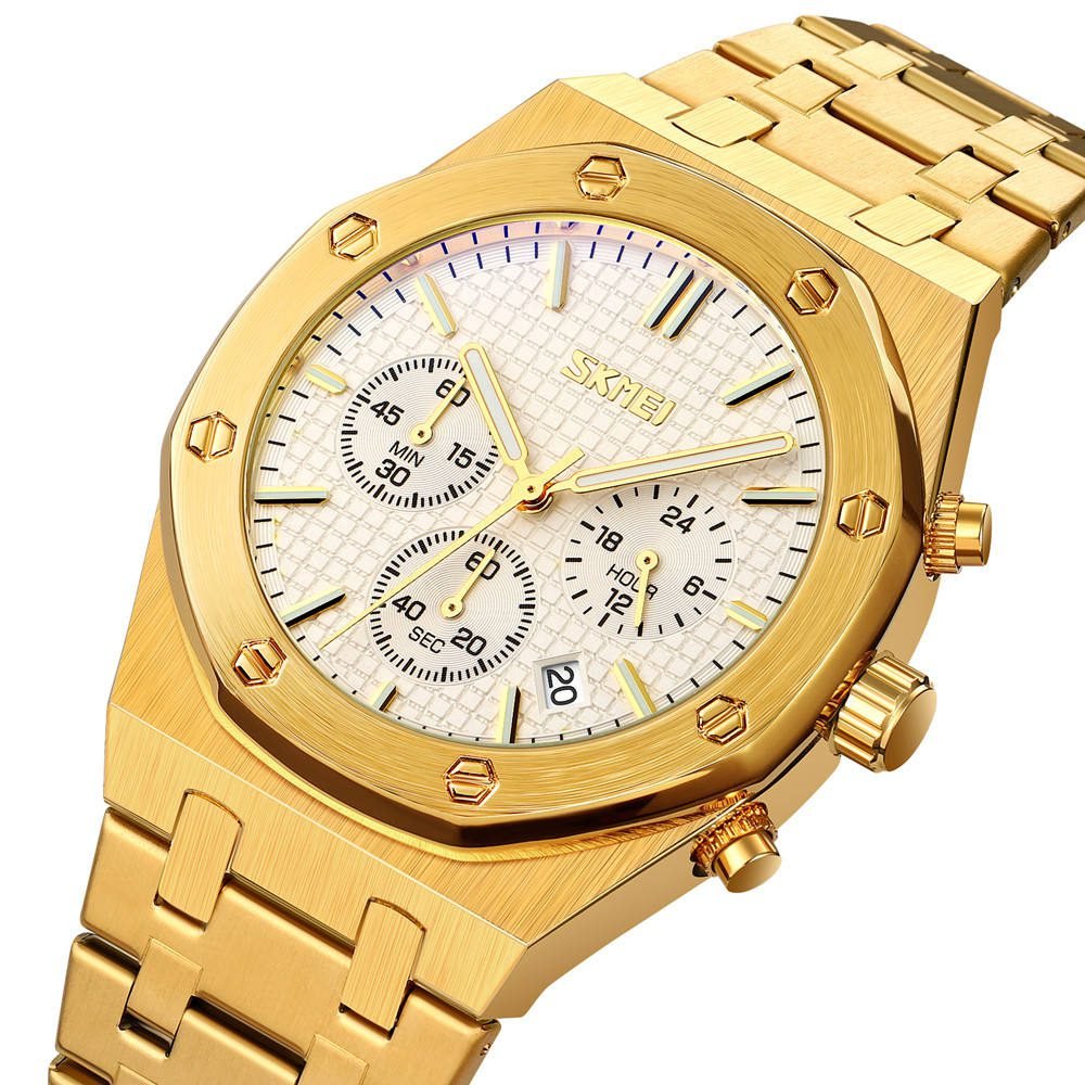 SKMEI – 9296 – Analog Stainless Steel Chronograph Quartz Watch – gold/silver