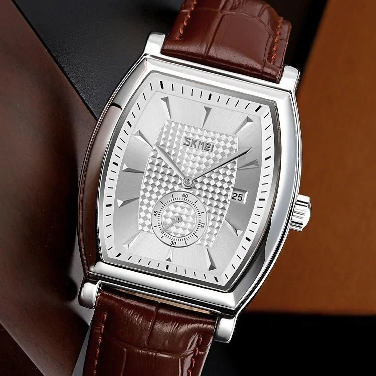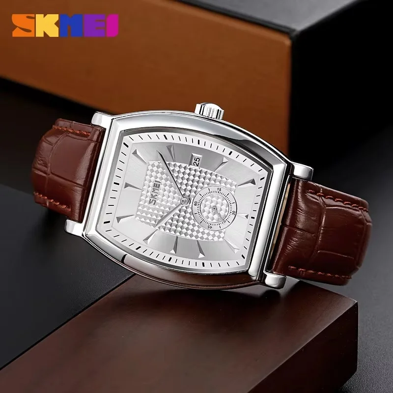 Skmei- 9306 – Leather Strap Quartz Alloy case Downsecond – silver/silver