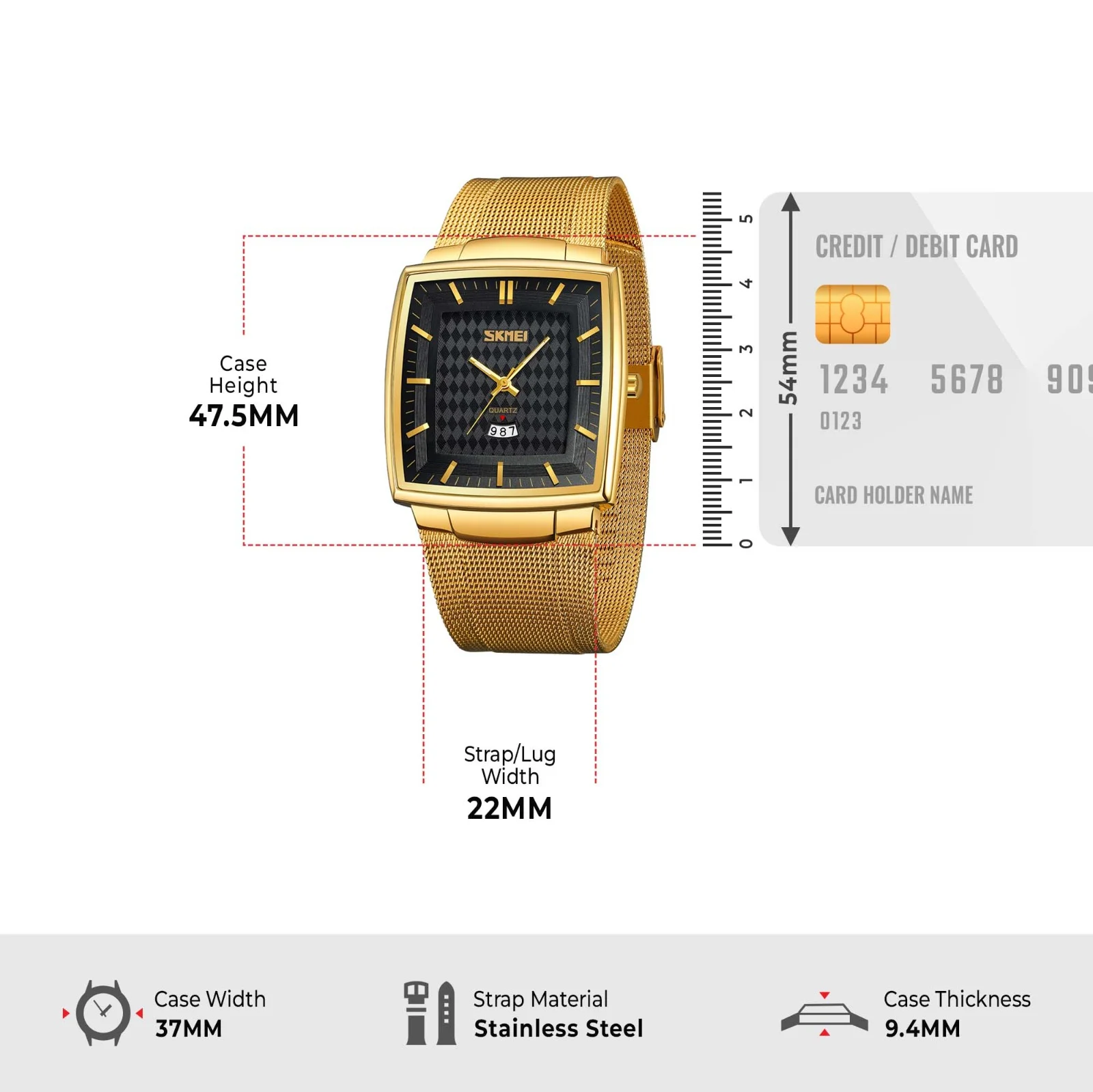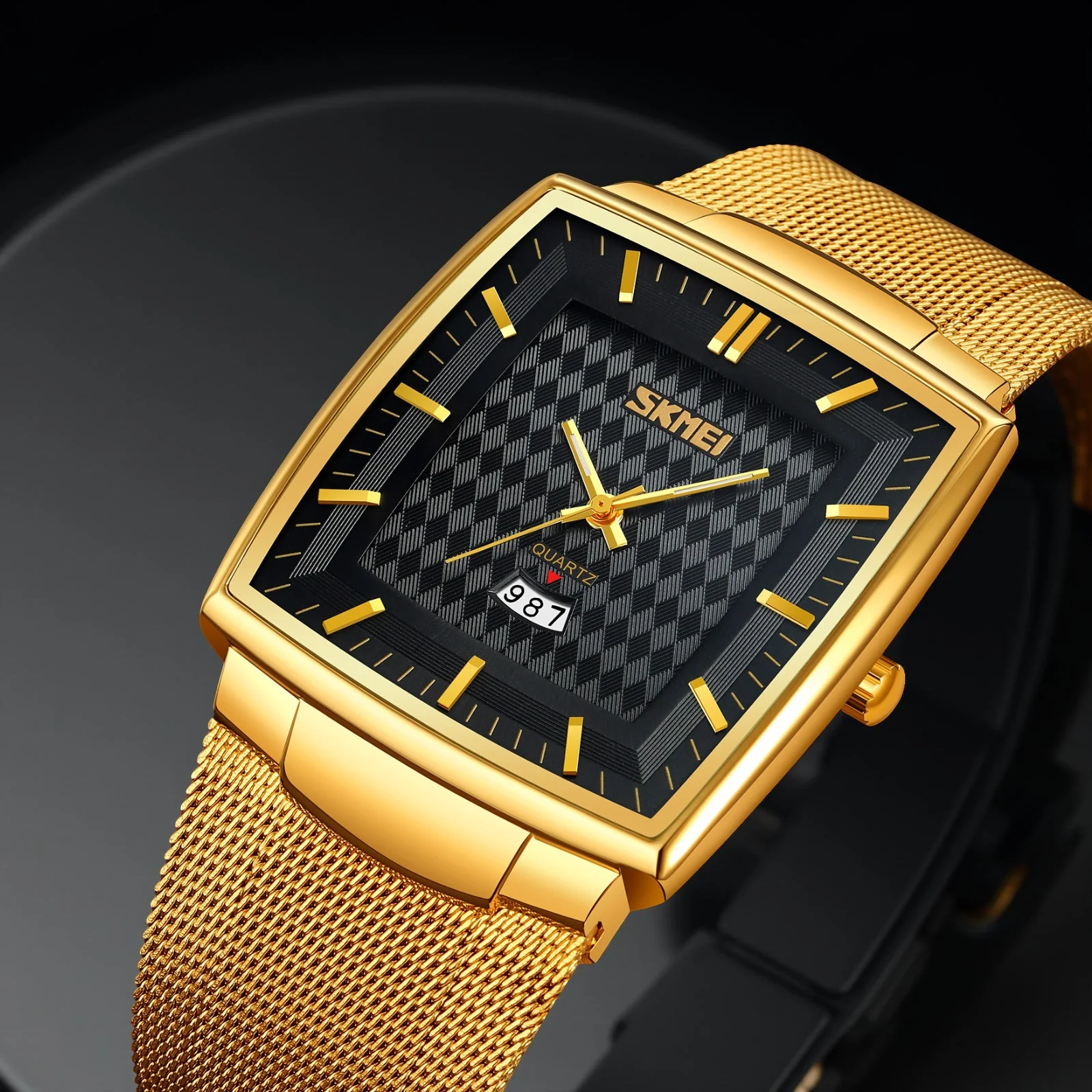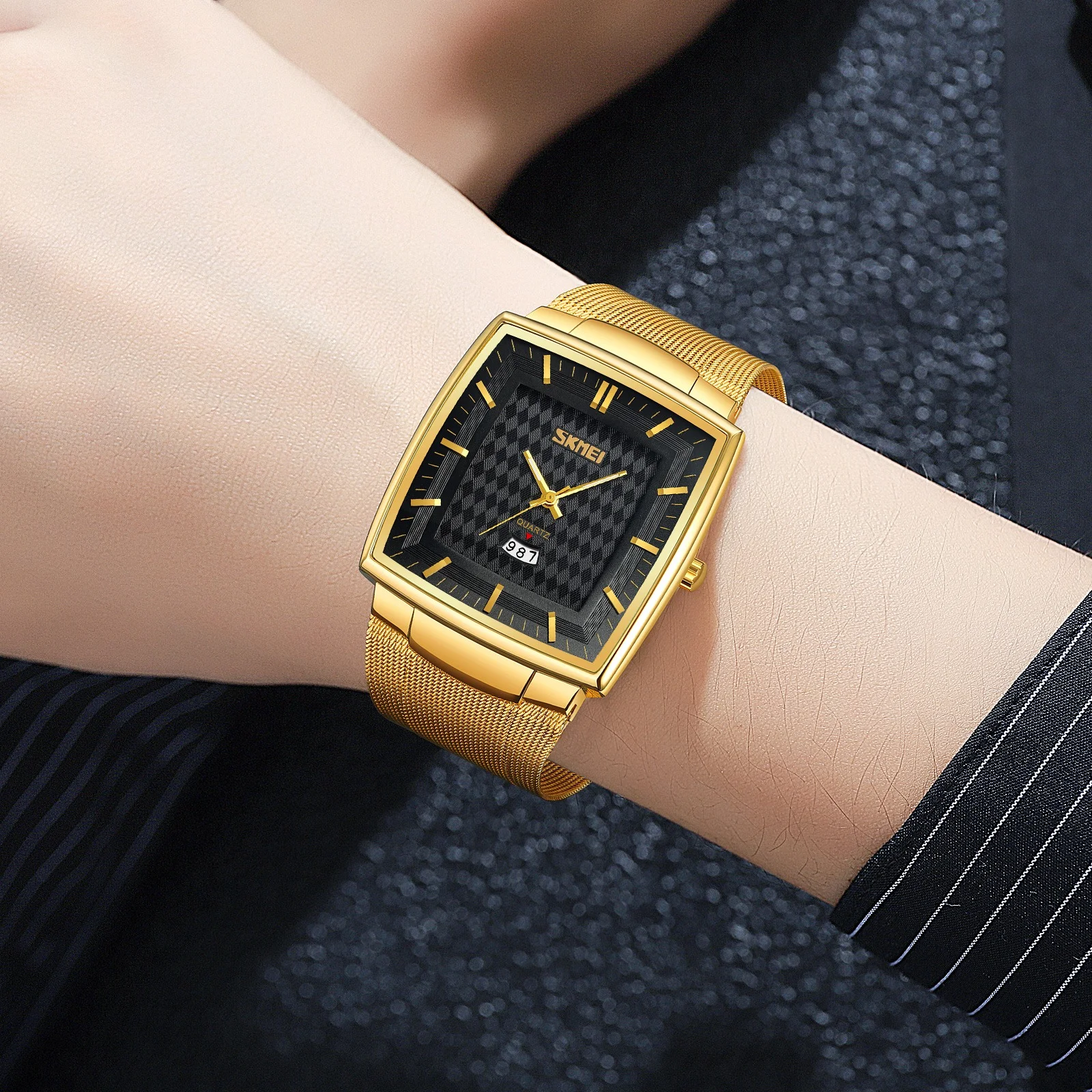 SKMEI – 9311 – Elegant Square Quartz Mesh Edition Watch – gold/black