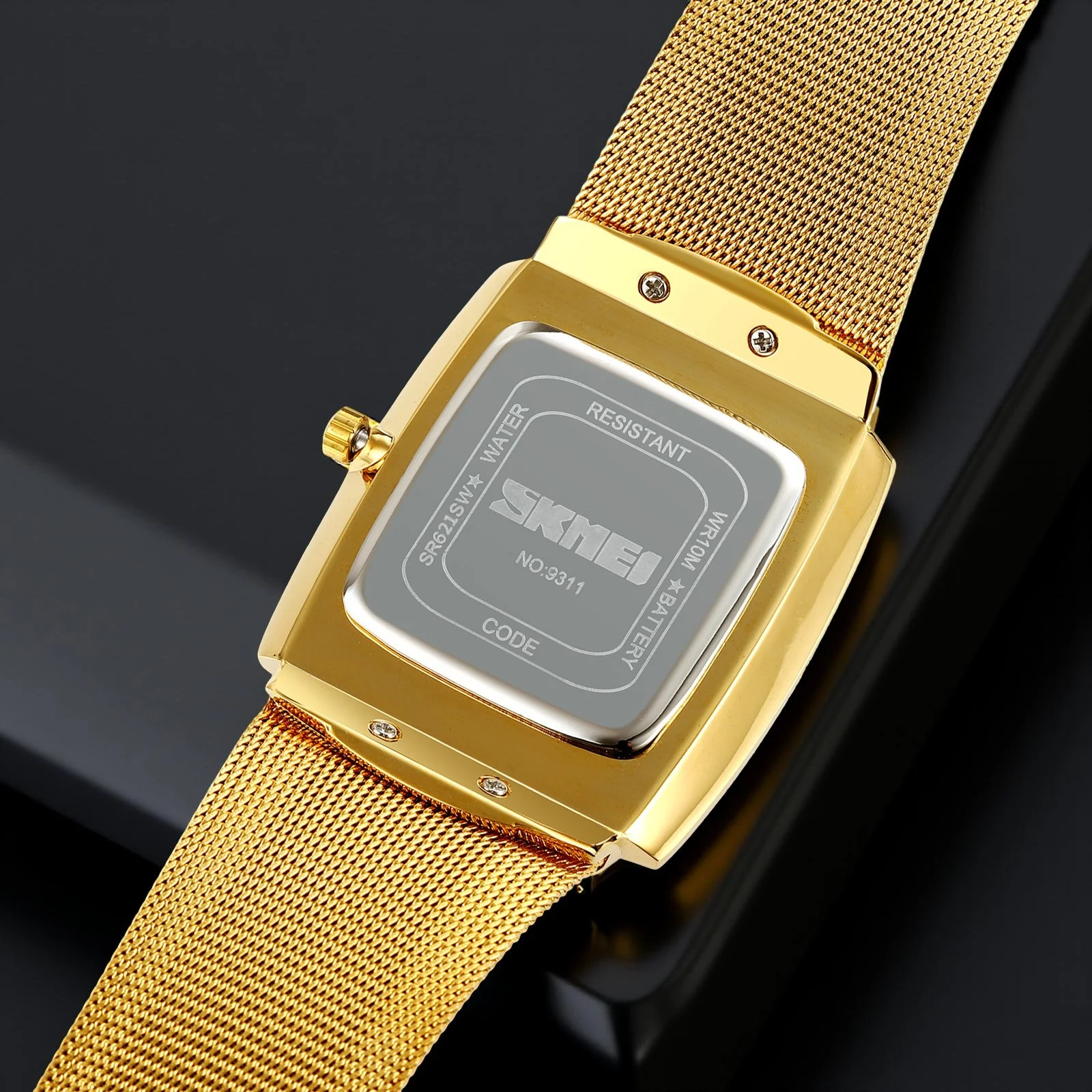 Be the first to review “SKMEI – 9311 – Elegant Square Quartz Mesh Edition Watch – gold/black”