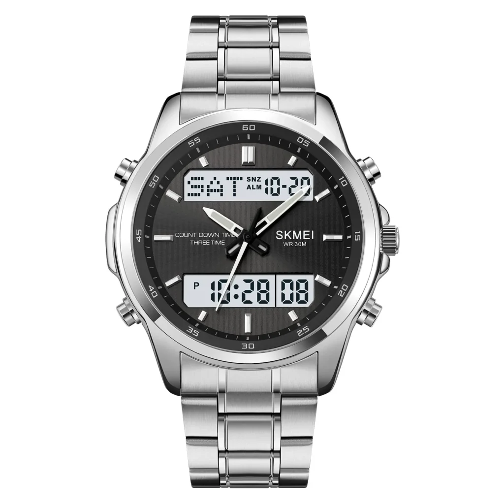 Skmei – 1389 – Dual Display Waterproof Business Watch – Silver/Black