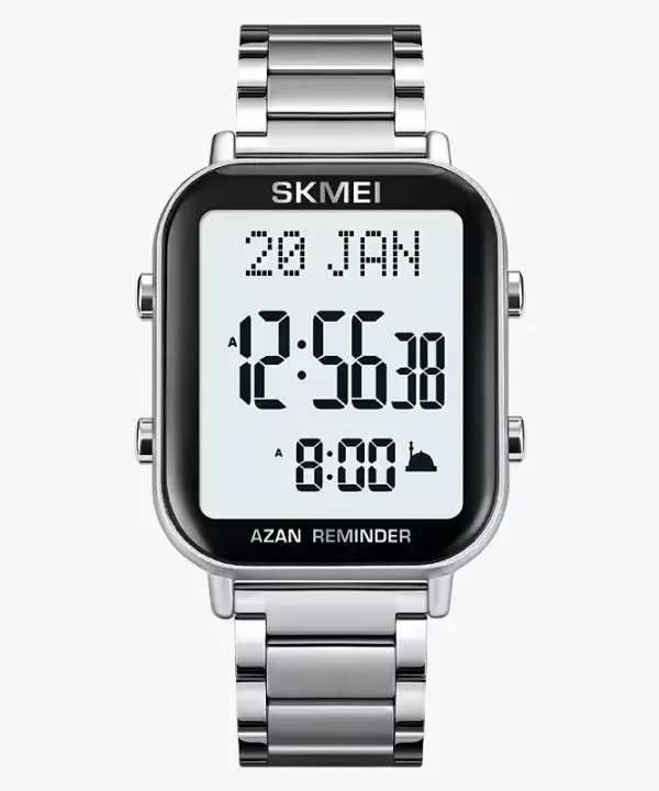 SKMEI – 2097 – Qibla Azan Time Reminder Prayer Watch – silver/white